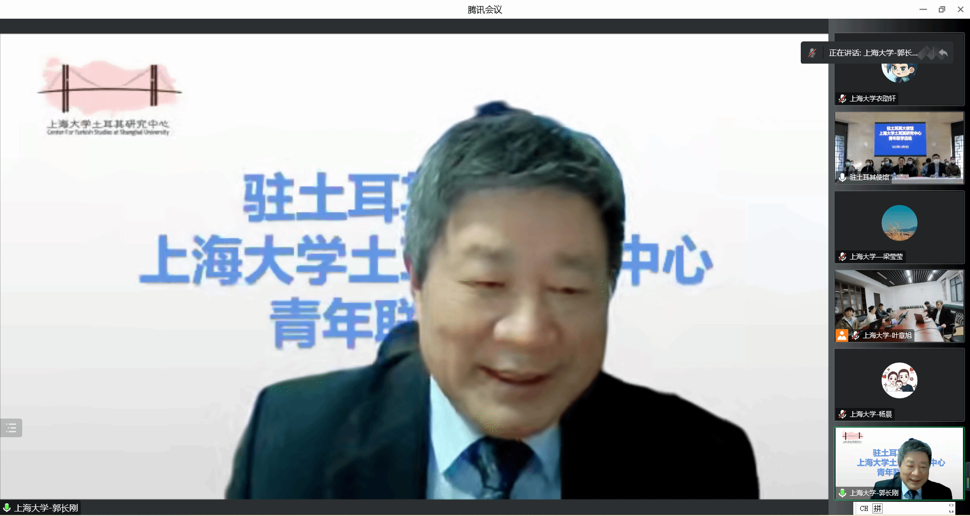 中心主任郭长刚教授最后对联学活动作了总结发言。他首先对大使馆在举办本次联学活动及对中心研究生在土耳其留学访问给予的支持表示感谢;其次,他指出相比于十九大,二十大报告在外交方面更加关注了中国所面临的国际形势,特别是提出敢于斗争、善于斗争的精神品格;第三,他强调了加强对土耳其研究的重要性,土耳其不仅是“一带一路”建设的节点国家,而且在近些年尤其是俄乌冲突中的外交活动非常引人关注。(供稿:叶章旭)