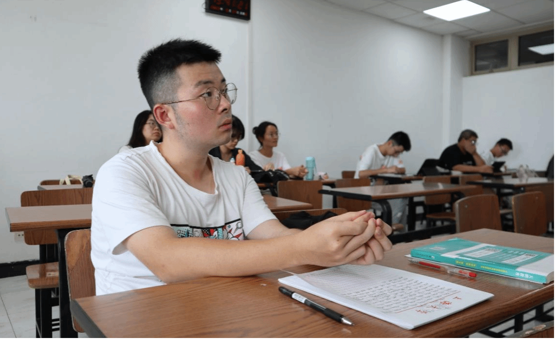 首先,高顿考研研究院的刘潮歌老师给为同学们进行了首日教育和职业生涯规划主题讲座。他向同学们介绍了文科生的未来职业选择,解析了文史哲近年来考研的难度与特点,并鼓励同学们——“不断拼搏,那便是热爱”,坚定了大家考研的决心。