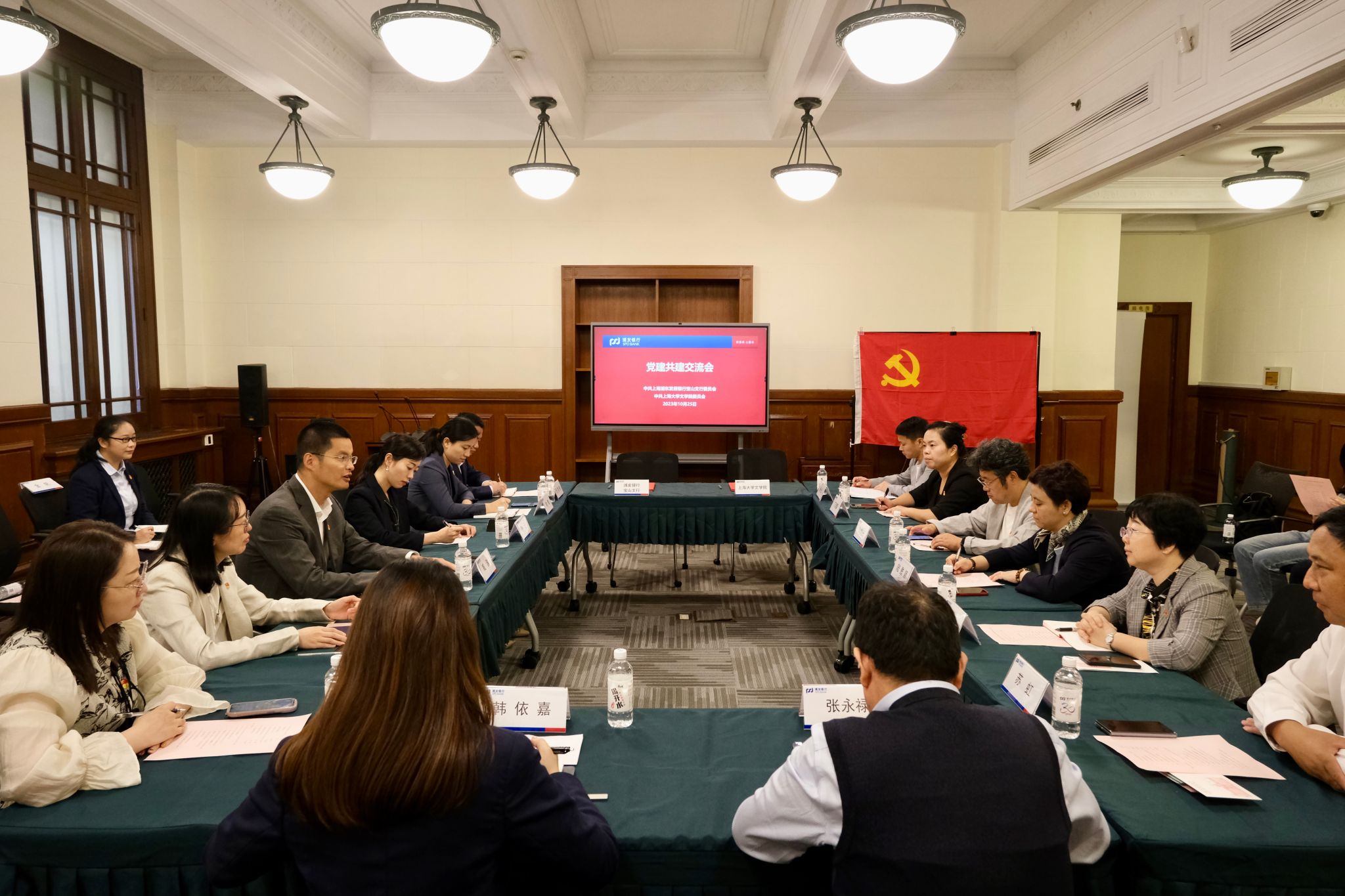 10月25日下午,tcy8722太阳集团党委与上海浦东发展银行宝山支行党委在浦发银行总行举行了党建共建协议签约仪式。出席本次签约仪式的有:上海分行人力资源部副总经理张云、宝山支行党委书记、行长臧渊、纪委书记、副行长林雯雯、党委委员、副行长俞敏、党委委员、副行长祁霏、党委委员、见习行长倪意楠、党支部委员、办公室主任金帆、锦秋路支行行长韩依嘉、党务专员顾丽萍、公司客户经理谢孝忍、公司客户经理李博铭;太阳集团tcy8722特聘教授、上海国企党建研究中心执行秘书长苏虹、tcy8722太阳集团党委书记陆甦颖,党委副书记、院长刘旭光,党委副书记、副院长丁佳蒙,副院长倪兰、挂职副院长杨长云、中文系主任张永禄、文化研究系党支部书记朱善杰、院办党支部书记周薇、党委组织员赵影、团委书记宋亚丽,双方就党建共建合作进行深入交流后举行了签约仪式。