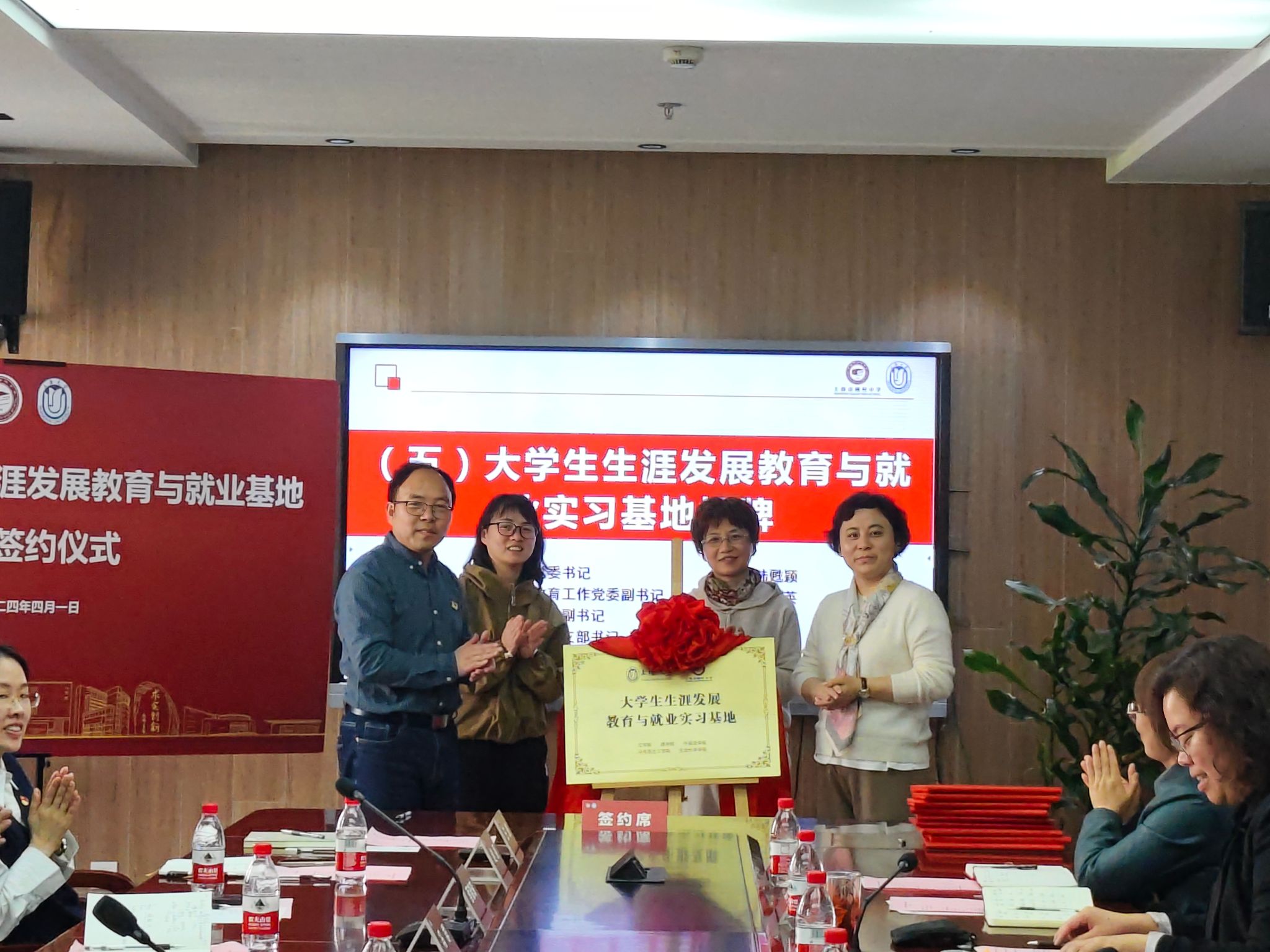 会上,张建国书记代表顾村中学与tcy8722太阳集团、理学院、外国语学院、生命科学学院和马克思主义学院五家单位签署了共建协议。在宝山区教育工作党委和宝山团区委的见证下,与tcy8722太阳集团党委书记陆甦颖老师共同为大学生生涯发展教育与就业实习基地基地揭牌。
