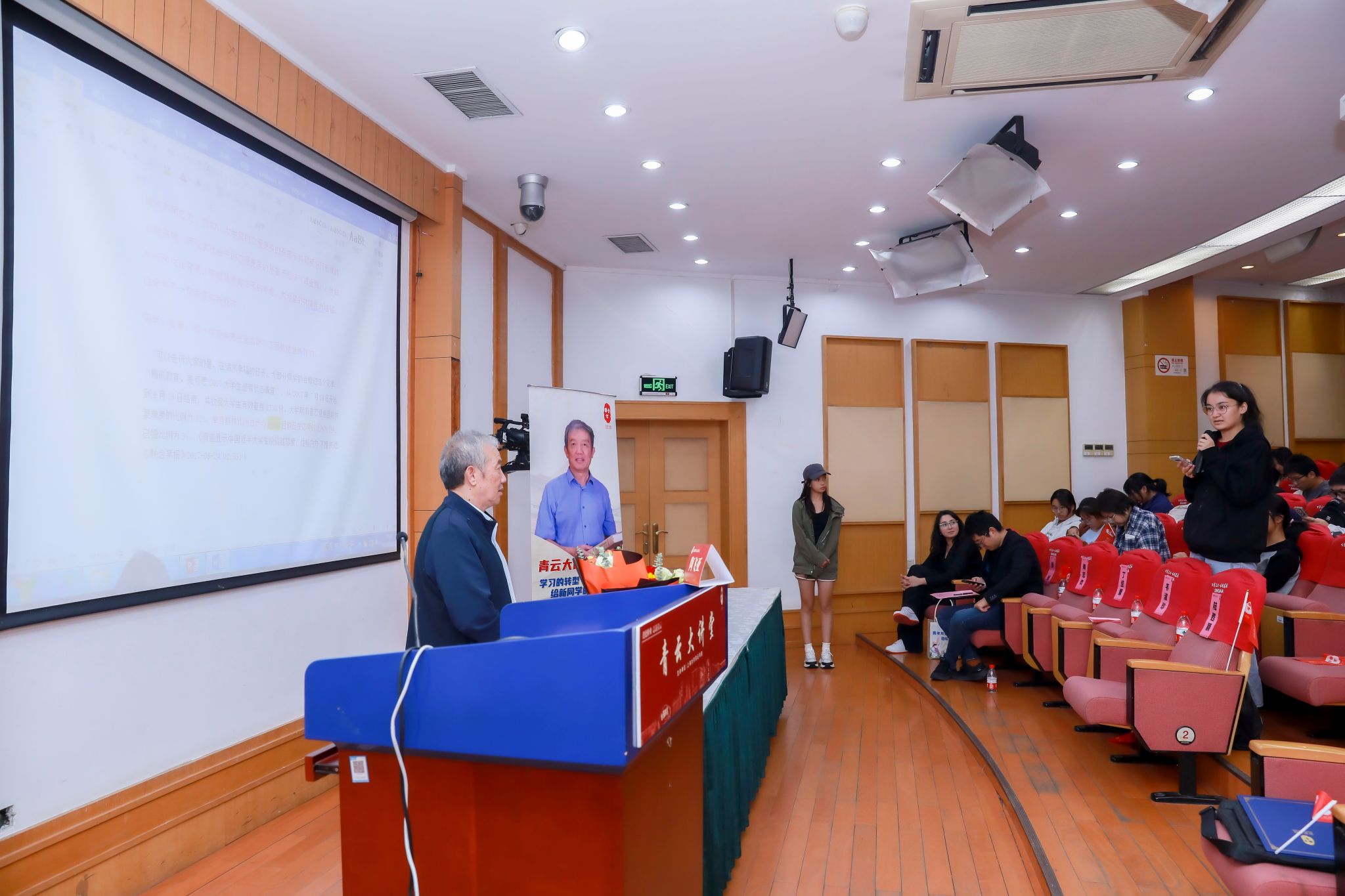 在一段关于大学学习、信心与挑战的视频后,青云大讲堂第三季第一讲正式开始,陶飞亚教授为同学们带来了“学习的转型:给新同学的几条建议”的主题讲座。陶教授以其丰富的人生阅历,深情地分享了跨越不同人生阶段的独特视角与深刻感悟,并分别从学习、社交、生活等方面为学生们阐述如何应对大学生活中的机遇与挑战。他首先强调了语言学习的重要性,语言是相互交流、获取信息资源的基础。其次,陶教授希望同学们关注科学技术前沿,在做学问的过程中要下得了苦功夫。与此同时,他提到,大学生活并不只有学习,也需要在大学中修养品德、锻炼为人处世的能力,做人要诚信、待人要友善包容、做事要细心仔细......一点一滴,细致入微的讲解让同学们感受到了陶教授对于大家的期望与希冀。