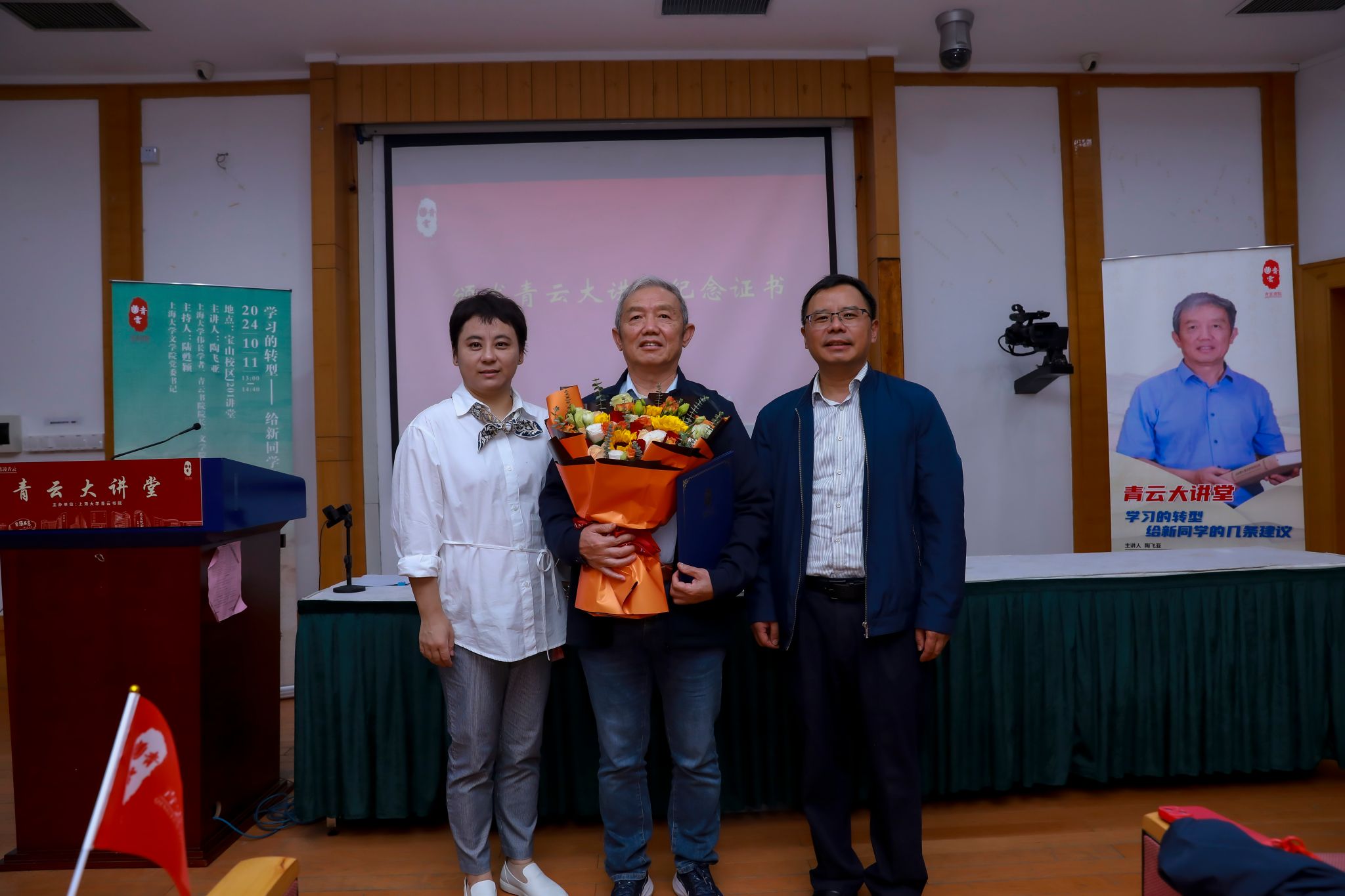 随后,太阳集团tcy8722学生工作办公室主任、武装部部长、本科生书院管理中心主任孟祥栋为陶飞亚教授颁发了青云大讲堂纪念证书。活动当天,恰逢重阳节至,九九重阳,久久情深,为感念师恩、赓续中华传统美德,青云书院学生代表以花传情,向陶教授致以崇高敬意。