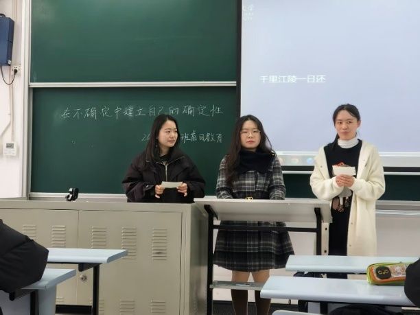 随后,各班级在班导师和班委的带领下开展特色活动——历史学班围绕学术规范展开探讨,班导师张悠然在探讨中强调学术道德的重要性,随后进行了猜灯谜、制灯笼活动感受传统文化魅力;汉语言文学一班班导师王玮旭针对考研、就业等路径答疑解惑,随后同学们亲手制作宋锦作品寄托美好愿望。汉语言文学二班通过微访谈和猜灯谜等环节,在班导师顾甦泳引导下探讨年俗演变,并收获生涯规划建议;汉语国际教育班则以“在不确定中建立自己的确定性”为主题,班导师陈书盈从时间管理到职业规划给予细致指导,帮助学生以饱满状态迎接新学期。