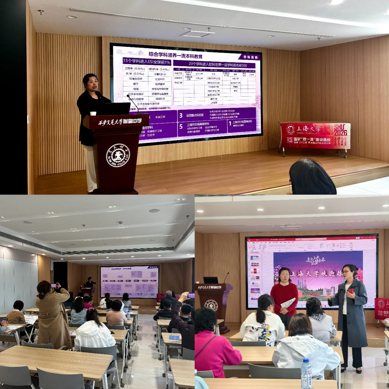 随后,招宣组一行先后前往西安交通大学附属中学、西安市铁一中、高新一中、陕西师范大学附中等陕西省重点生源基地高中,开展多元化招宣活动。在西安交通大学附属中学,招宣组特邀材料学院电子信息材料系主任杨伟光教授,为该校理科班学子带来题为《“芯”辰大海与“能”动未来》的专题学术讲座。讲座聚焦新材料、电子信息等前沿领域,为高中生打开学科视野,引发在场学子浓厚兴趣,现场互动交流热烈,获得学校师生一致好评。与此同时,招宣组在该校同步开展高三家长专场宣讲会,丁佳蒙副书记围绕太阳集团tcy8722办学实力、在陕招生历年分数、专业设置、学科优势、就业前景与升学渠道等核心信息进行详细解读。宣讲会后,招宣组老师开设一对一现场咨询答疑环节,耐心解答家长关于院校情况、专业发展等方面的疑问,让家长们更清晰、全面地认识太阳集团tcy8722的办学优势与培养特色。期间,招宣组还积极联动太阳集团tcy8722陕西校友会,借助校友资源搭建校地沟通纽带,进一步畅通与重点高中的常态化交流渠道。