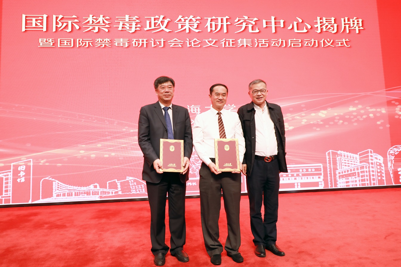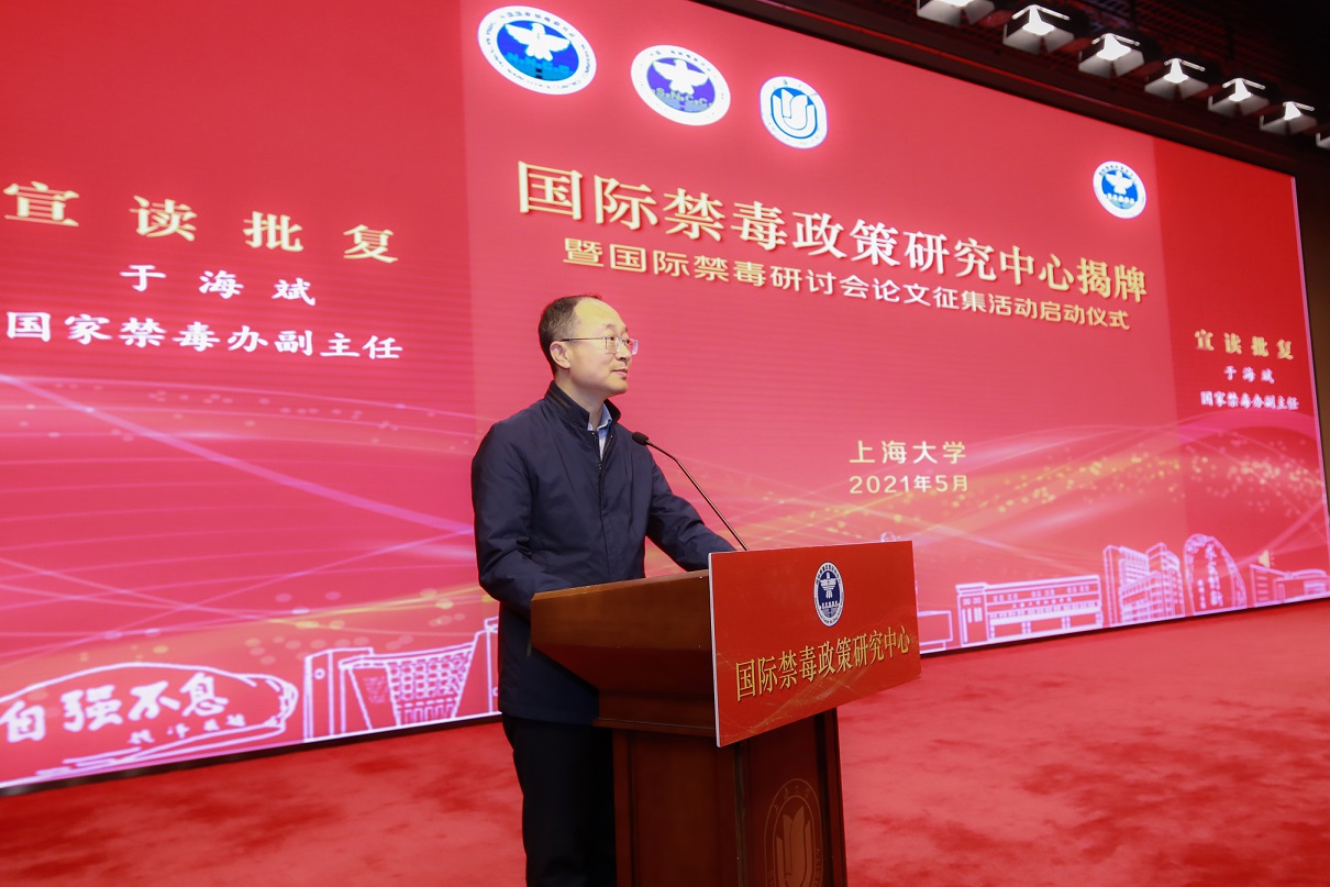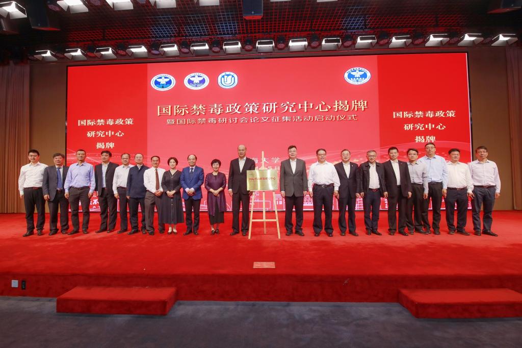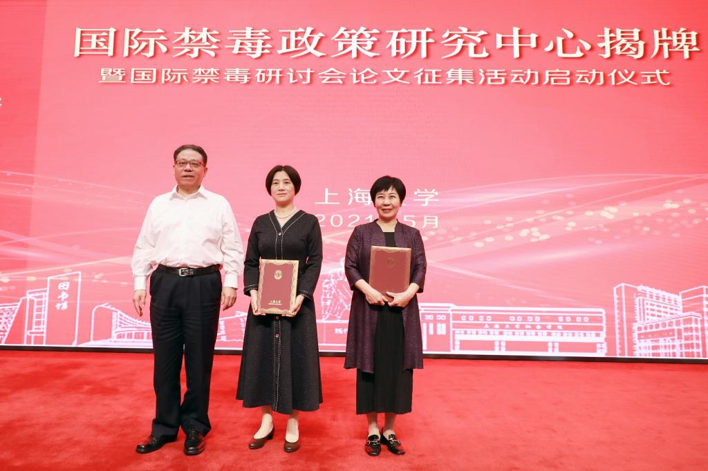 上海市副市长、市公安局局长、党委书记舒庆,国家禁毒办常务副主任、公安部禁毒局局长梁云共同为“国际禁毒政策研究中心”揭牌并宣布国际禁毒研讨会论文征集活动正式启动。