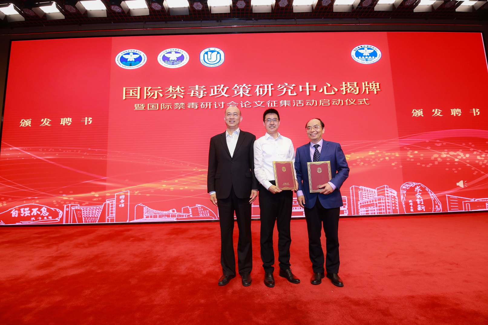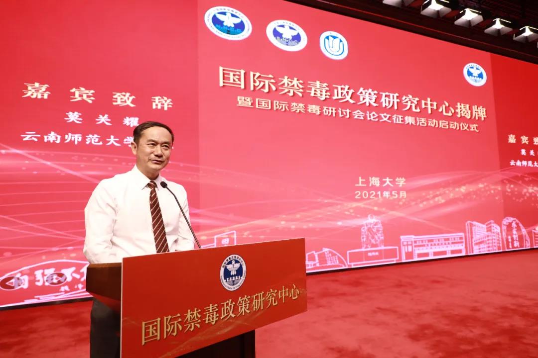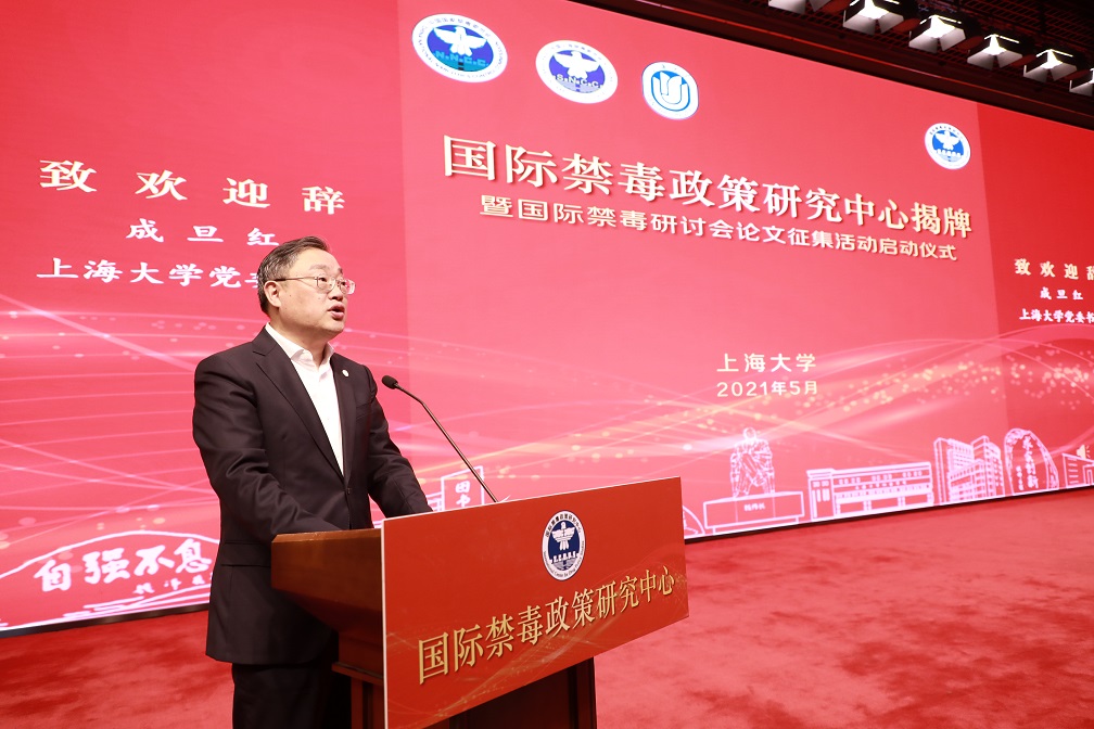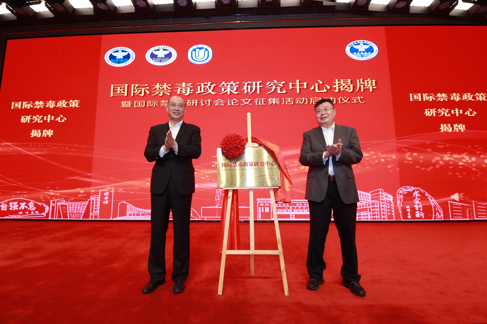 上海市副市长、市公安局局长、党委书记舒庆,国家禁毒办常务副主任、公安部禁毒局局长梁云共同为“国际禁毒政策研究中心”揭牌并宣布国际禁毒研讨会论文征集活动正式启动。