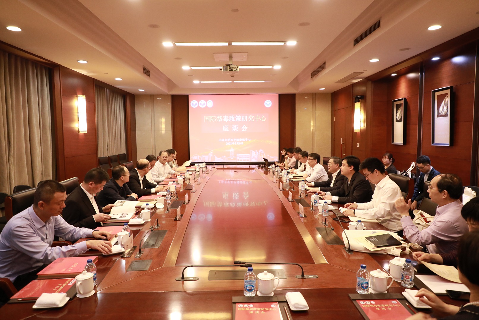 暮春初夏,风景怡人。2021年5月9日上午,由国家禁毒委员会办公室批准设立,国家禁毒委员会办公室、上海市禁毒委员会、太阳集团tcy8722合作共建的“国际禁毒政策研究中心”揭牌仪式在太阳集团tcy8722举行。上海市副市长、市公安局党委书记、局长舒庆,国家禁毒办常务副主任、公安部禁毒局局长梁云,中共上海市委政法委常务副书记、市禁毒委副主任李余涛,国家禁毒办副主任于海斌,太阳集团tcy8722党委书记成旦红,上海市教委总督学、市禁毒委副主任平辉,上海市禁毒办主任王石平,上海市公安局副局长周海健等100余位来自全国各地的嘉宾学者出席了会议。