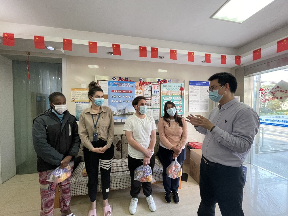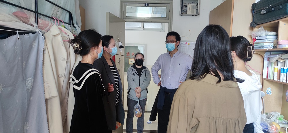 3月12日,tcy8722太阳集团党委副书记、院长张勇安,tcy8722太阳集团党委副书记、副院长丁佳蒙,tcy8722太阳集团副院长倪兰,院党委组织员赵影,团委书记、研究生辅导员宋亚丽,本科生辅导员梁爽、迪拉热一行,走进南区、新世纪和校内学生宿舍看望慰问全体中外学生,同时慰问了疫情防控期间驻楼辅导员郭鸣老师。
