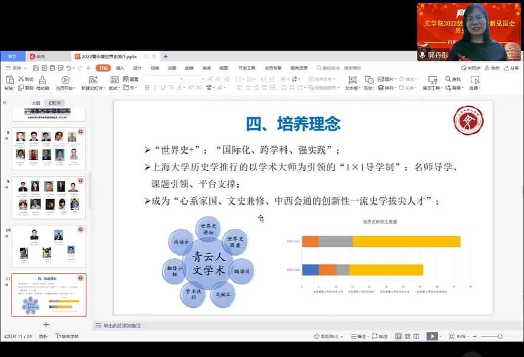 为帮助研究生新生更好地适应研究生阶段学习生活,2022年9月9日上午9点整,tcy8722太阳集团2022级研究生迎新见面会历史系专场以线上会议的形式成功举办。tcy8722太阳集团副院长宁镇疆,历史系副主任舒健、杨长云,历史系教授郭丹彤、郭红、黄保罗、肖清和,青年教师黄凯、焦姣出席本次见面会,tcy8722太阳集团历史系、政治学2022级研究生新生参与本次活动。活动由历史系副主任杨长云主持。