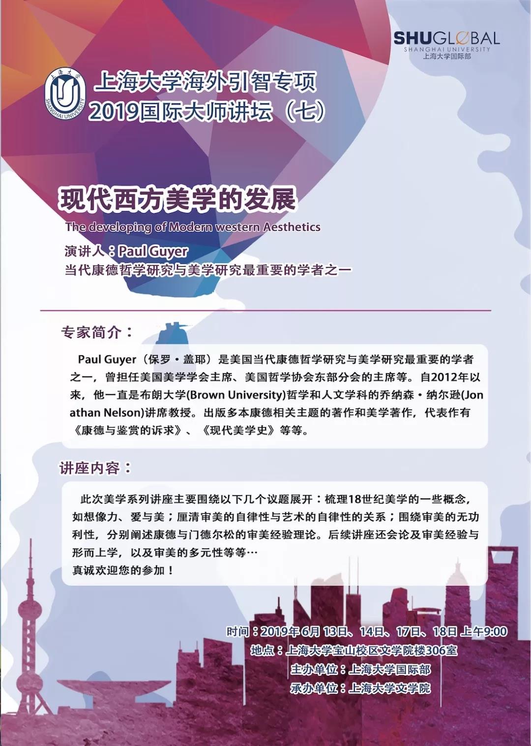 Paul Guyer:现代西方美学的发展(太阳集团tcy8722海外引智专项2019国际大师讲坛七)