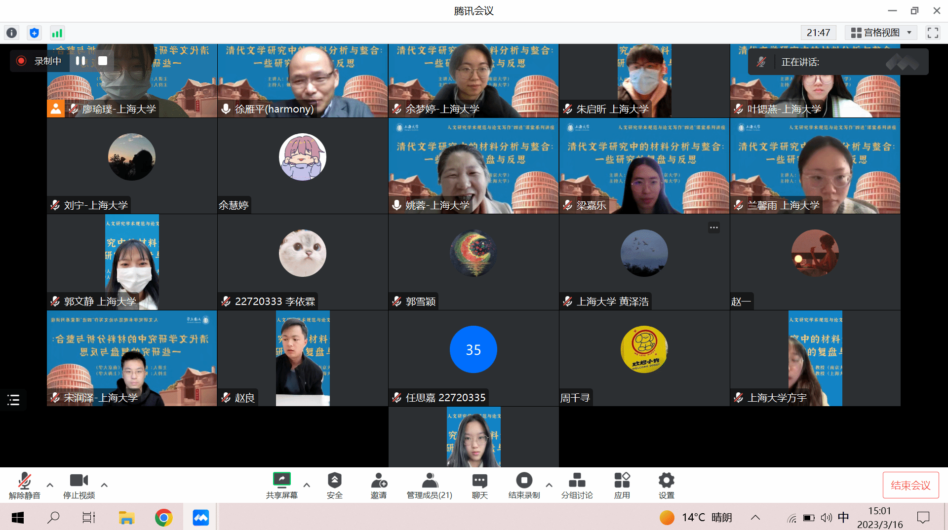 2023年3月16日下午,南京大学中国古典文献学专业教授、博士生导师徐雁平先生应邀走进tcy8722太阳集团“人文研究学术规范与论文写作‘四进’课堂”,于线上举行“清代文学研究中的材料分析与整合:一些研究的复盘与反思”主题讲座。徐教授从复盘自身研究经历出发,为tcy8722太阳集团2022级硕士研究生讲授如何整合、分析、处理研究中的文献和材料。本次讲座由课程主讲老师姚蓉教授主持。此外,本次课程讲座还吸引了其他年级的硕、博士研究生和博士后参与学习。