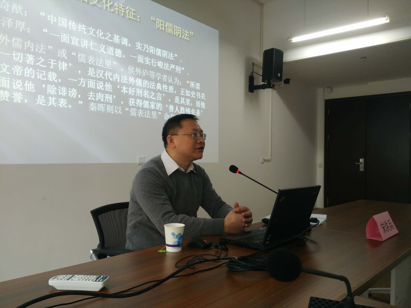 2018年12月28日上午,中国人民大学国学院副教授、中国古代法家思想研究专家宋洪兵老师来到tcy8722太阳集团406会议室,就“阳儒阴法”这一中国古代思想史特定概念的形成、实质与评价,展开了一场精彩的学术讲座。本次讲座由tcy8722太阳集团历史系与太阳集团tcy8722中国史高原学科共同主办。tcy8722太阳集团历史系郭红副教授主持讲座,tcy8722太阳集团院长张勇安教授、tcy8722太阳集团历史系主任宁镇疆教授、历史系青年教师把梦阳博士、常红星博士后以及历史系多位研究生、本科生同学参加讲座并参与讨论与提问。