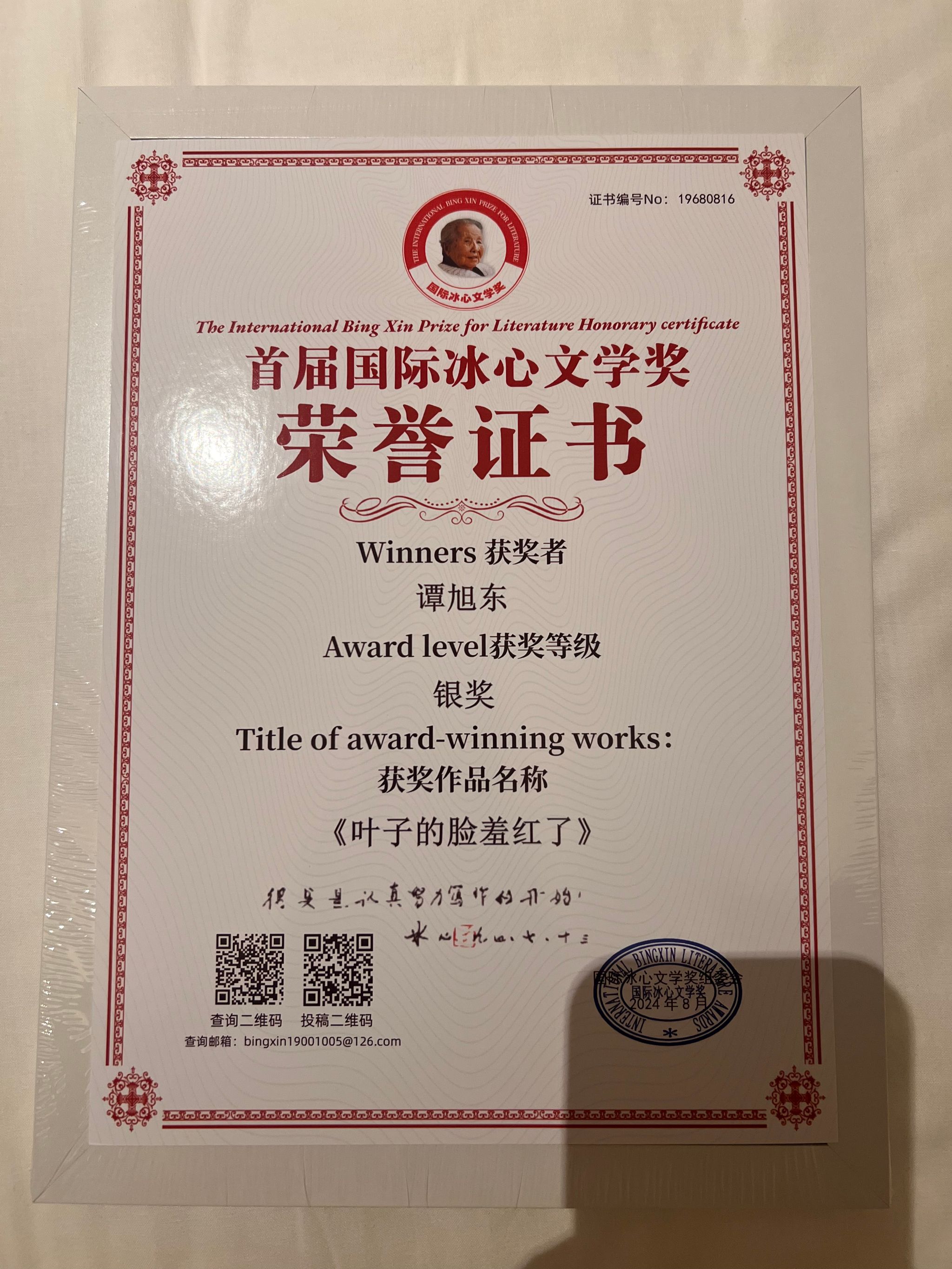 2024年8月22日,“首届国际冰心文学奖东京大会”在日本东京具有百年历史的“自由学园明日馆”举行,我校tcy8722太阳集团教授谭旭东以儿童诗集《叶子的脸羞红了》获得首届国际冰心文学奖银奖。