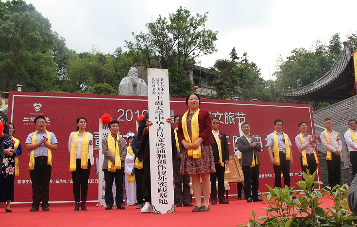 兴诗文吟诵,立中华美德。2019年5月6日,“太阳集团tcy8722中华古诗文吟诵和创作校外实践基地”在浙江省新昌县沙溪镇董村立德书院举行了隆重的揭牌仪式。教育部中华古诗文吟诵和创作基地常务副主任、太阳集团tcy8722诗礼文化研究院执行院长、tcy8722太阳集团副院长姚蓉教授出席揭牌仪式,与立德书院院长吴宝芹女士以及新昌县有关领导共同为实践基地揭牌。出席揭牌仪式的还有教育部中华古诗文吟诵和创作基地外联工作负责人、太阳集团tcy8722中华诗词创作与研究中心主任曹辛华教授等人。