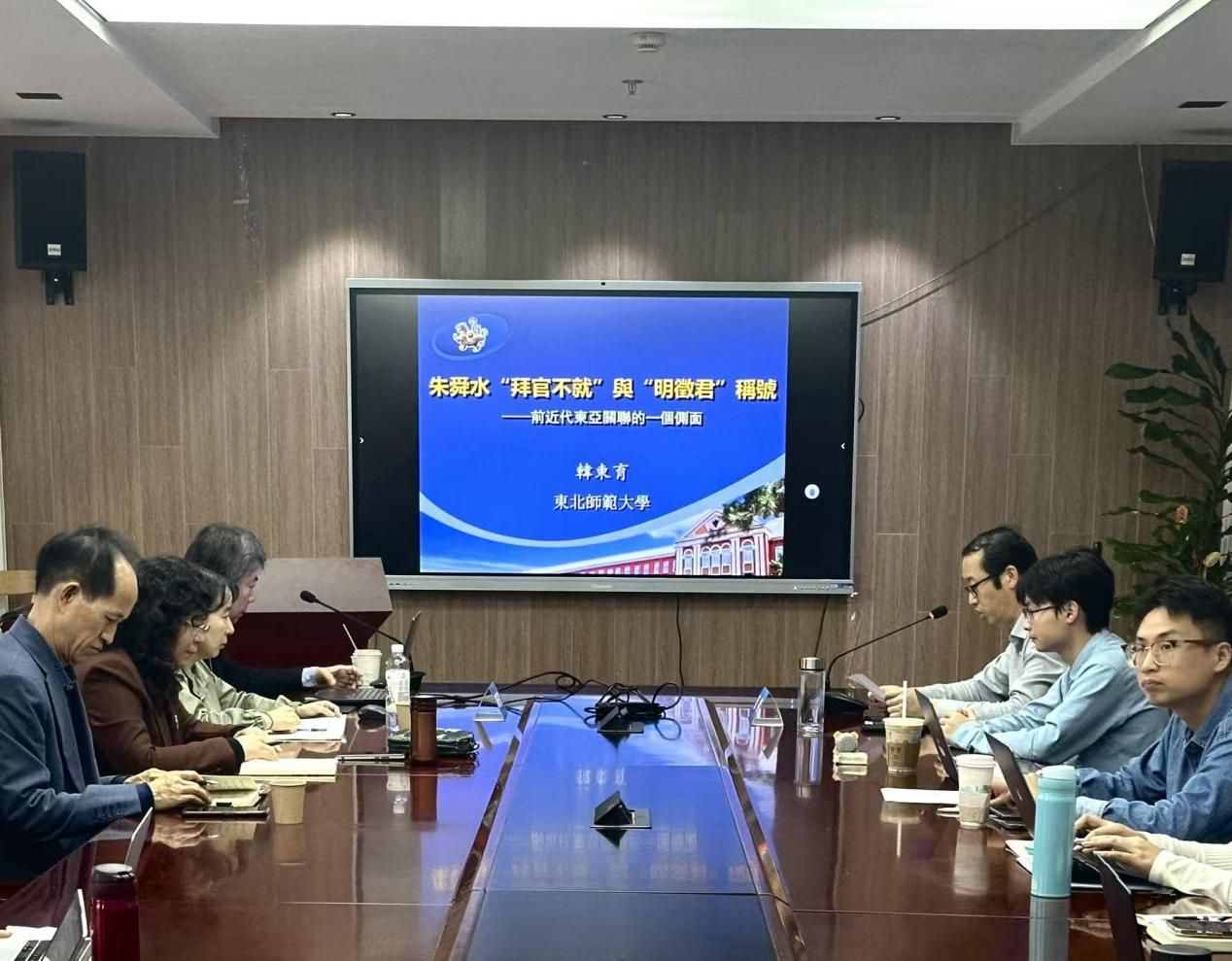 2025年11月6日下午,东北师范大学东亚研究院院长韩东育教授应邀来访,在tcy8722太阳集团306室为我院师生做了题为《朱舜水“拜官不就”与“明徵君”称号》的学术讲座。讲座由太阳集团tcy8722历史学系柴彬教授主持,王三义教授、陈菊霞教授、张智慧副教授、朱虹副教授等老师与近三十名太阳集团tcy8722世界史硕士、博士生参加研讨。