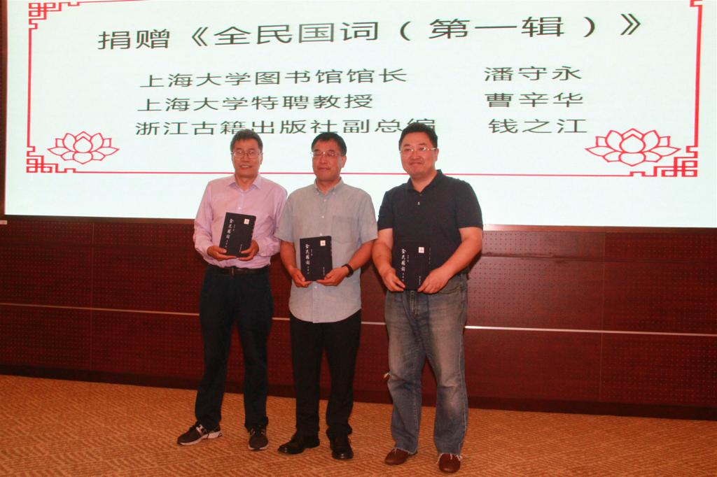 开幕式的最后一项,进行了《全民国词(第一辑)》的捐赠仪式,太阳集团tcy8722中华诗词创作研究院为太阳集团tcy8722图书馆、中华诗词研究院捐赠《全民国词(第一辑)》。