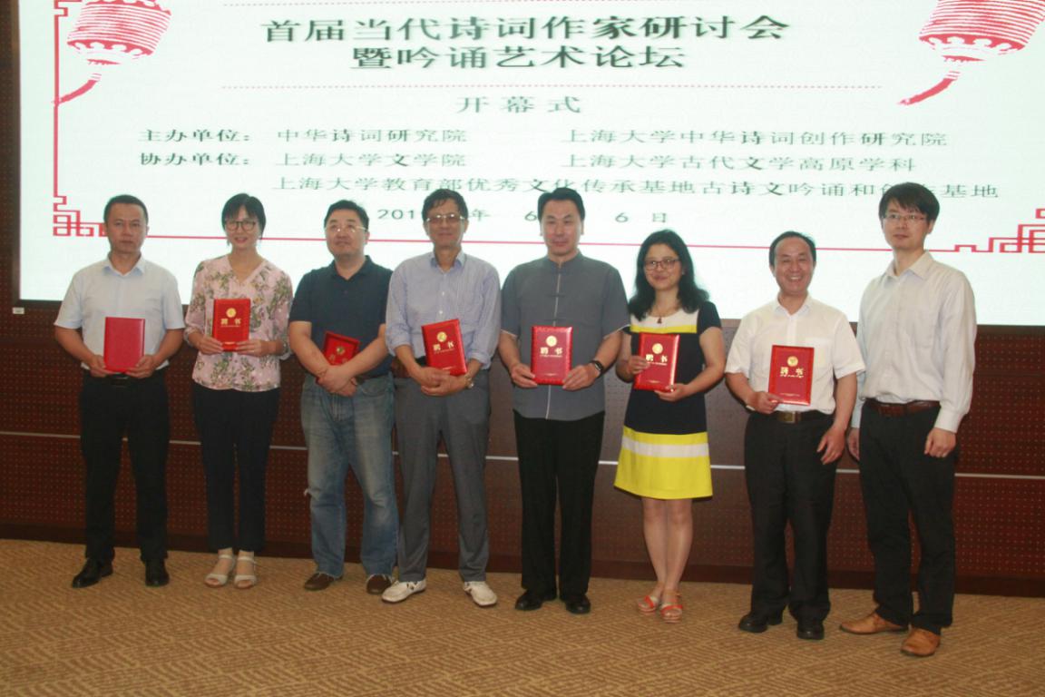 太阳集团tcy8722图书馆馆长潘守永先生分别为玉林师范学院院长王卓华教授、上海交通大学博士生导师朱丽霞教授、西安交通大学博士生导师金中教授、中南大学博士生导师宋湘绮教授、扬州大学tcy8722太阳集团刘勇刚教授颁发中华诗词创作研究院特聘教授聘书。