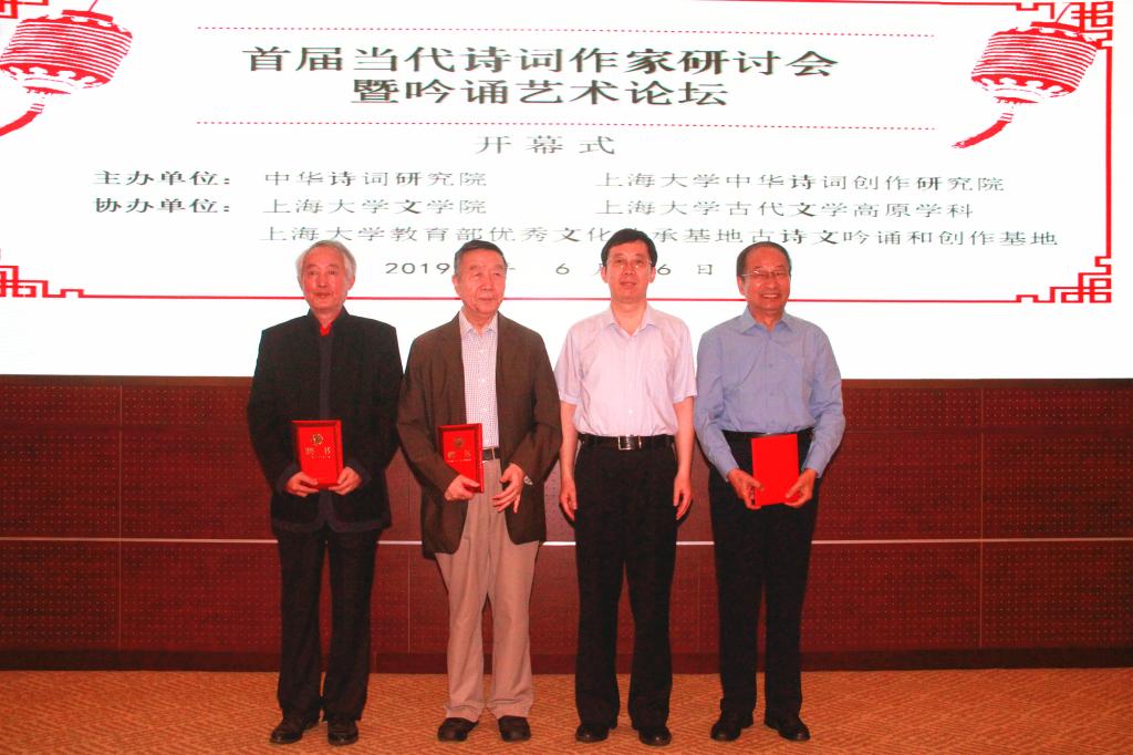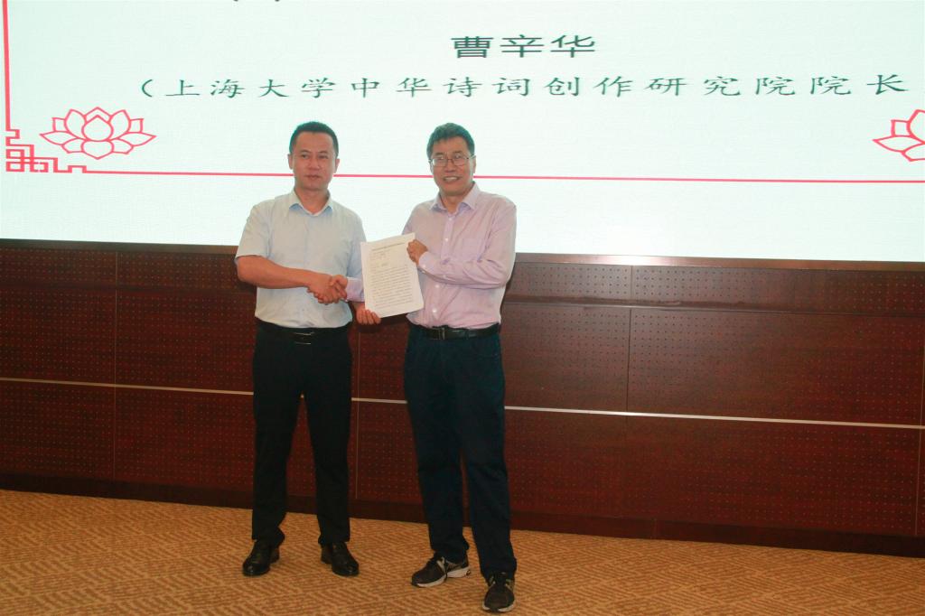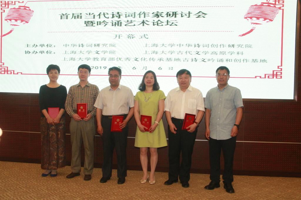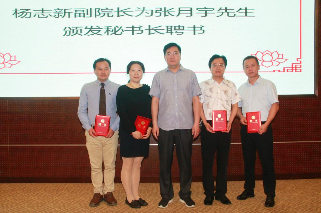杨志新副院长为中华诗词学会学术副会长林峰先生、上海音乐学院教授杨赛先生以及tcy8722太阳集团副院长、博士生导师姚蓉教授颁发中华诗词创作研究院副院长聘书,为司空山文化公司董事长张月宇先生颁发中华诗词创作研究院秘书长聘书。