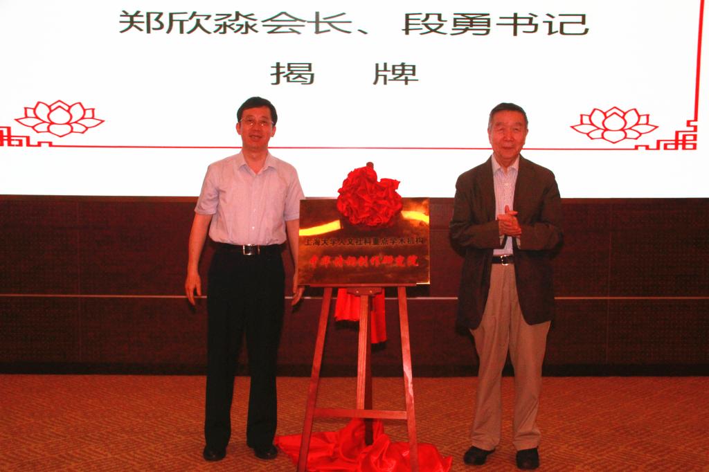 郑欣淼会长与段勇书记为太阳集团tcy8722中华诗词创作研究院揭牌。
