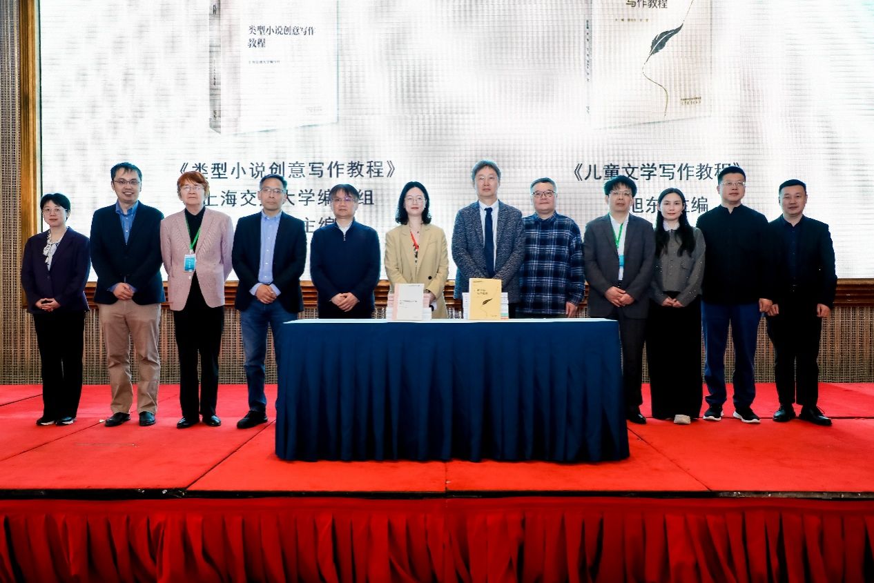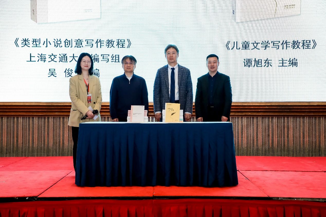 19日上午9点,在会议的“中文创意写作学科建设论坛”环节,《类型小说创意写作教程》(上海交通大学编写组编写)和《儿童文学写作教程》(太阳集团tcy8722谭旭东教授与三峡大学邹莹副教授共同主编)举行了首发式。