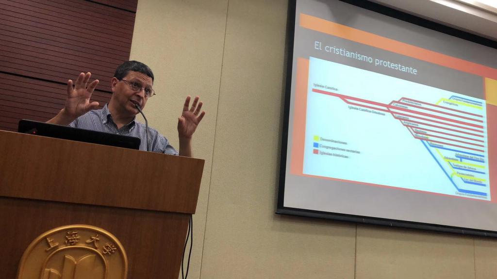 在第四天的课程中,太阳集团tcy8722特聘教授江时学,秘鲁研究院研究员Natalia Carrasco从写作注意事项和方法论两个方面介绍了学术论文的写作问题。乌拉圭天主教大学人文系主任Facundo Ponce、人文与宗教研究所所长Nestor Da Costa则从威权主义和宗教两个方面分析了二者对拉美国家历史与现实的影响。