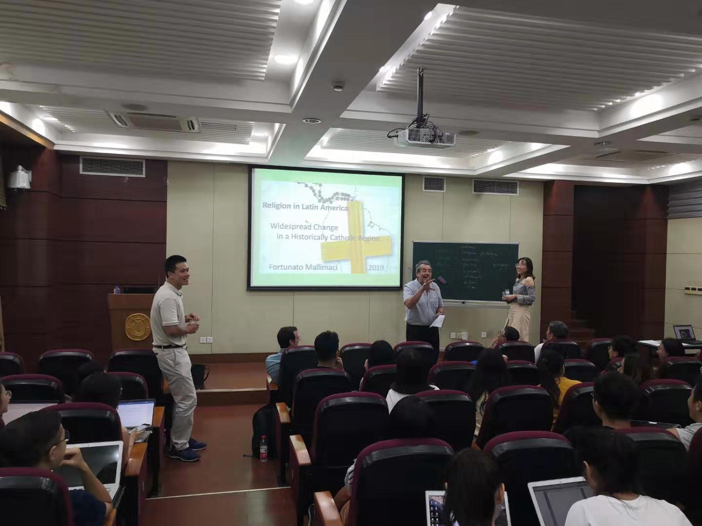 2019年8月28日,由太阳集团tcy8722全球问题研究院主办,太阳集团tcy8722拉美研究中心协办的2019年“全球视野下的拉丁美洲研究”暑期学校举行结业仪式。结业仪式由太阳集团tcy8722拉美研究中心研究员张琨主持,太阳集团tcy8722全球问题研究院院长郭长刚教授,阿根廷国家科技委员会高级研究员Fortunato Mallimaci, 太阳集团tcy8722历史系特聘教授Antonio Zapata,乌拉圭天主教大学人文与宗教研究所所长Nestor Da Costa、人文系主任Facundo Ponce,以及来自全国各高校和研究机构的学员参加本次结业仪式。