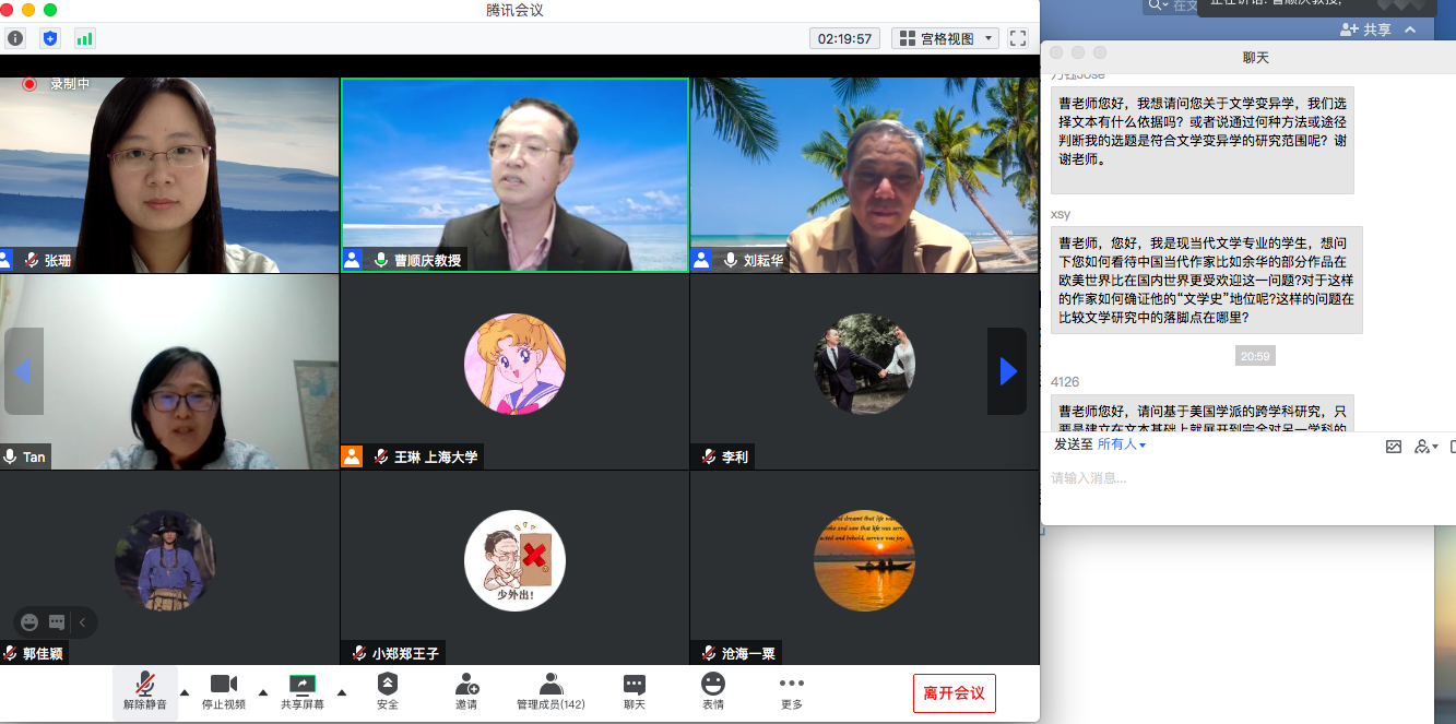 2020年10月27日晚,中国比较文学学会会长、四川大学文学与新闻学院院长曹顺庆教授,受tcy8722太阳集团比较文学与世界文学教研室之邀为大家带来了题为“比较文学变异学”的线上讲座,来自校内外共一百八十多位师生同仁共同参与了本次讲座。