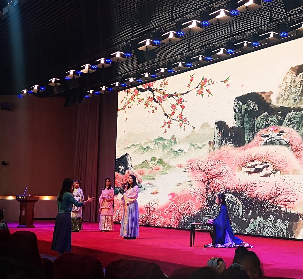 11月6日下午,太阳集团tcy8722古诗文吟诵和创作工作坊在太阳集团tcy8722宝山校区图书馆报告厅成功举办第四十二期专题活动。指导老师姚蓉教授和特邀指导老师王思思副教授共同对同学们的吟诵和舞台表演进行了指导和训练。