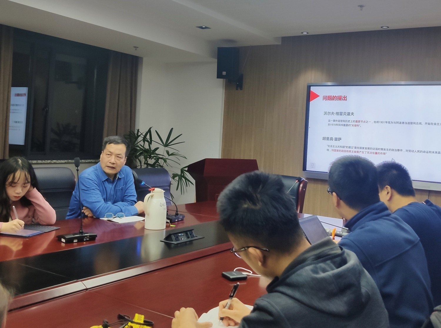 最后,韩琦教授向在场的研究生同学们强调在读书的过程中一定要带有问题意识,世界史研究除了需要语言能力,还要具备能够对所得资料进行分析和整合的理论功底。另外,韩琦教授还指出,历史研究不是单纯地罗列事实,而是要以一手史料为依据,通过对历史过程的叙述得出启示和体悟。在交流互动环节,韩琦老师分别对老师和同学提出的三个问题做出了详细解答,与各位师生围绕20世纪30年代的国际背景以及拉美民众主义的发展展开了讨论。韩琦教授的讲授和解答均使大家受益良多。