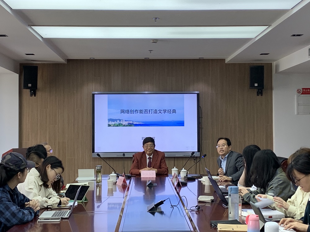 4月16日上午,中南大学tcy8722太阳集团欧阳友权教授在tcy8722太阳集团306学术会议室为tcy8722太阳集团研究生做了一场《网络创作能否打造文学经典》的专题讲座。本次讲座由中国创意写作中心的张永禄教授主持,钱文亮教授、许道军副教授等老师参加。
