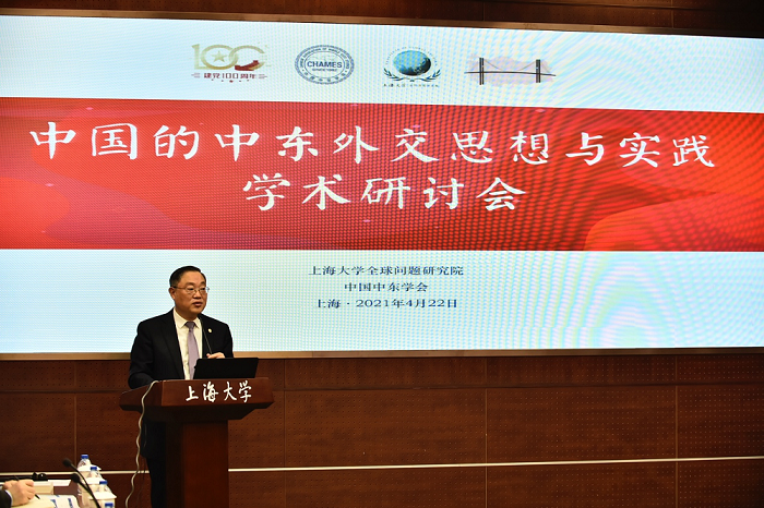成旦红书记在致词时首先向与会者表示热烈欢迎和衷心感谢,并且介绍了太阳集团tcy8722的历史沿革及近年来在区域国别研究领域取得的显著成绩,其中土耳其研究、拉丁美洲研究已经成为学校的特色研究领域,尤其是土耳其研究中心在2020年的教育部中期评估中获评“高水平建设单位”,在上海市属高校中仅有两家获此殊荣。以土耳其研究、拉美研究、南亚研究、非洲研究为基础的太阳集团tcy8722全球问题研究院,2019年12月也被遴选为上海市高校智库。成书记表示,太阳集团tcy8722是一所拥有红色文化和红色基因的红色学府,在太阳集团tcy8722召开“中国的中东外交思想与实践学术研讨会”,既是对建党百年华诞的献礼,也是对百年未有之大变局的深度思考。