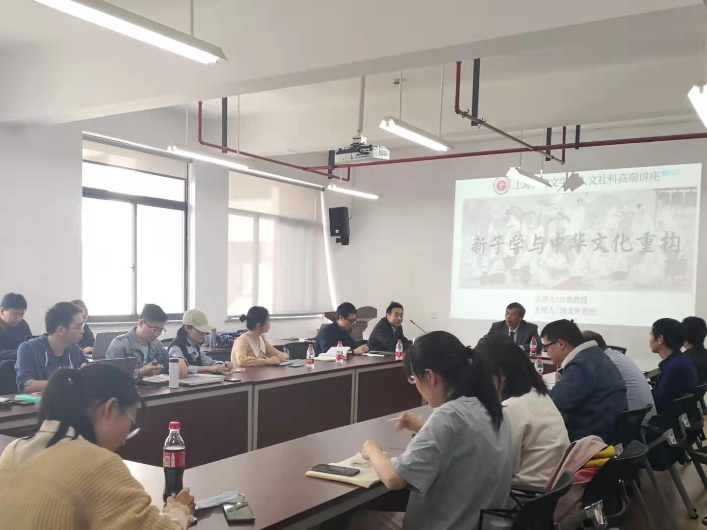 4月29日下午,华东师范大学中文系方勇教授应邀做客tcy8722太阳集团,主讲了题为《新子学与中华文化重构》的学术报告,并接着参与相同主题的学术研讨会。讲座和会议由太阳集团tcy8722饶龙隼教授主持,学院曹辛华、姚蓉、尹楚兵、邹西礼教授、杨秀礼、梁奇副教授等40多位师生参加讲座和研讨。