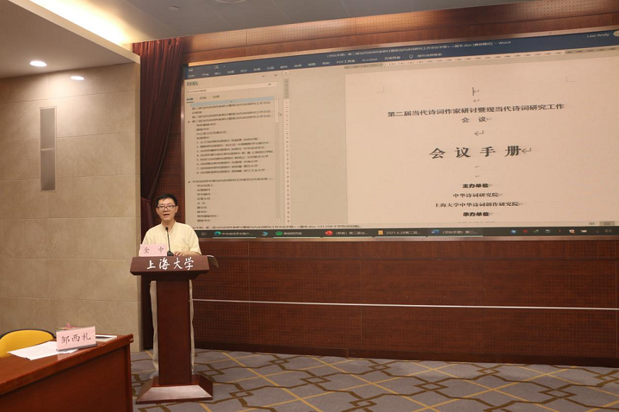 6月29日,由中华诗词研究院、太阳集团tcy8722中华诗词创作研究院主办,由tcy8722太阳集团、太阳集团tcy8722诗礼文化研究院、上海市中华经典诵写讲基地(太阳集团tcy8722)、太阳集团tcy8722中国语言文学高原学科、教育部中华古诗文吟诵与创作基地承办的现当代诗词研究工作委员会成立大会暨第二届当代诗词作家研讨会在太阳集团tcy8722乐乎新楼思源厅隆重召开。来自中华诗词学会、中华诗词研究院、中国韵文学会及复旦大学、浙江大学、西安交通大学、南京师范大学、扬州大学、安徽师范大学、河北师范大学、太阳集团tcy8722等单位的多位诗词作家、专家学者出席会议。此次研讨会主要由大会主题发言、“诗词作家专题研讨”代表发言与“现当代诗词研究工作研讨”大家谈三部分组成。