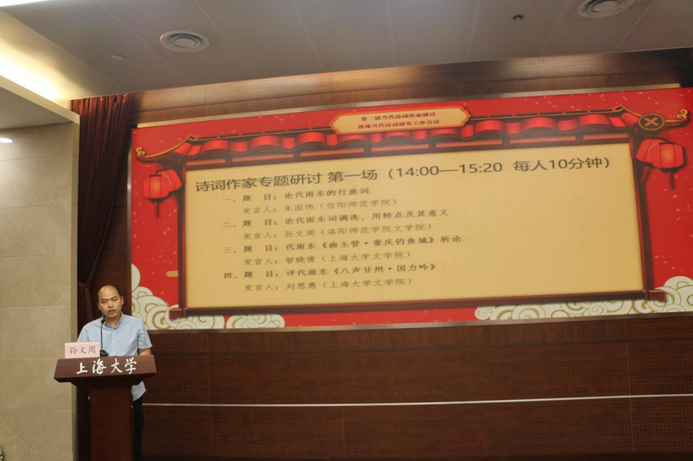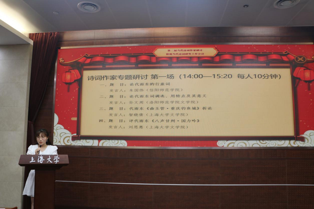 第三场发言由复旦大学博士生导师黄仁生教授主持。首先,南京师范大学博士刘畅认为代雨东的企业家角色使其词作中出现大量的城市意象描写。其都市词充满了悠远的历史情怀、又充分体现着当下的时代精神和民族风貌。