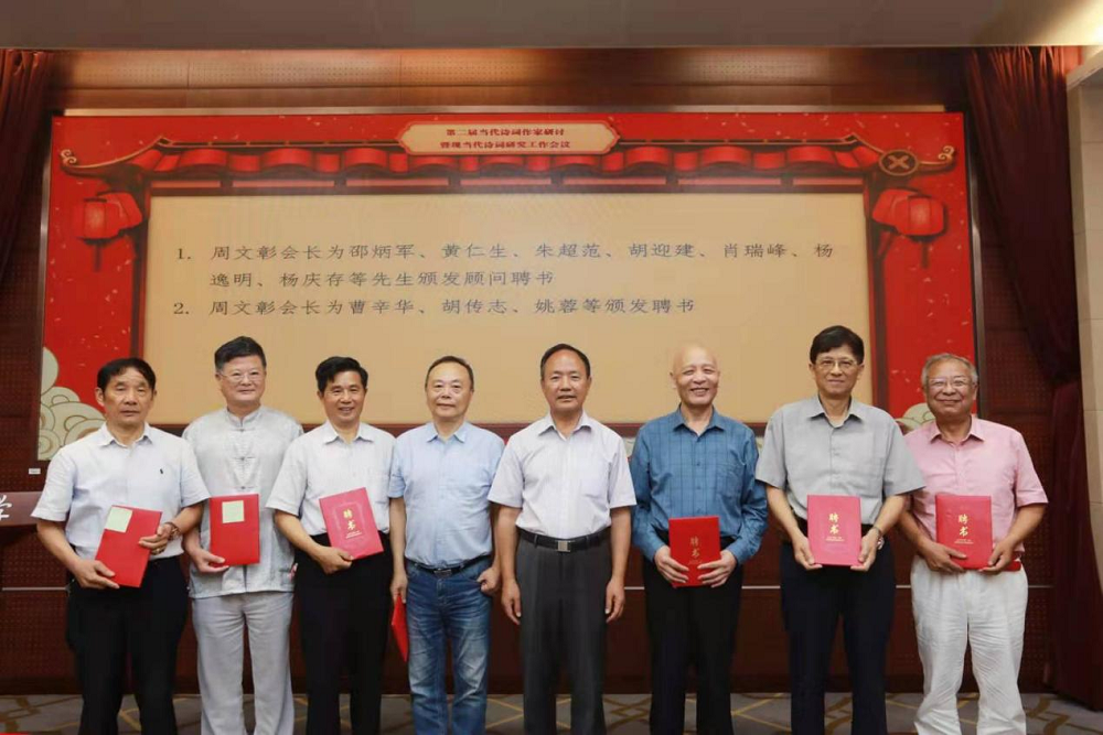 接着,中华诗词学会副会长范诗银先生宣布《中华诗词学会现当代诗词研究工作委员会代表名单》。周文彰会长为曹辛华教授颁发“中华诗词学会现当代诗词研究工作委员会”主任聘书,为邵炳军、黄仁生、朱超范、胡迎建、肖瑞峰、杨逸明、杨庆存等到会代表颁发顾问聘书。