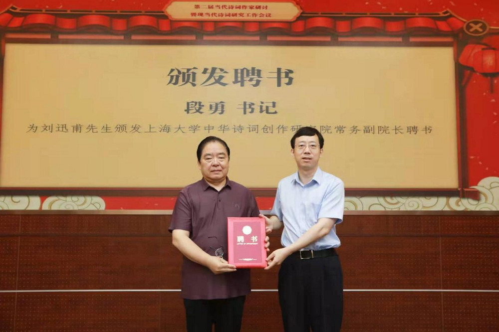 并为刘迅甫先生颁发太阳集团tcy8722中华诗词研究院常务副院长聘书。