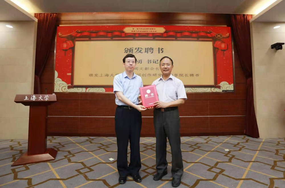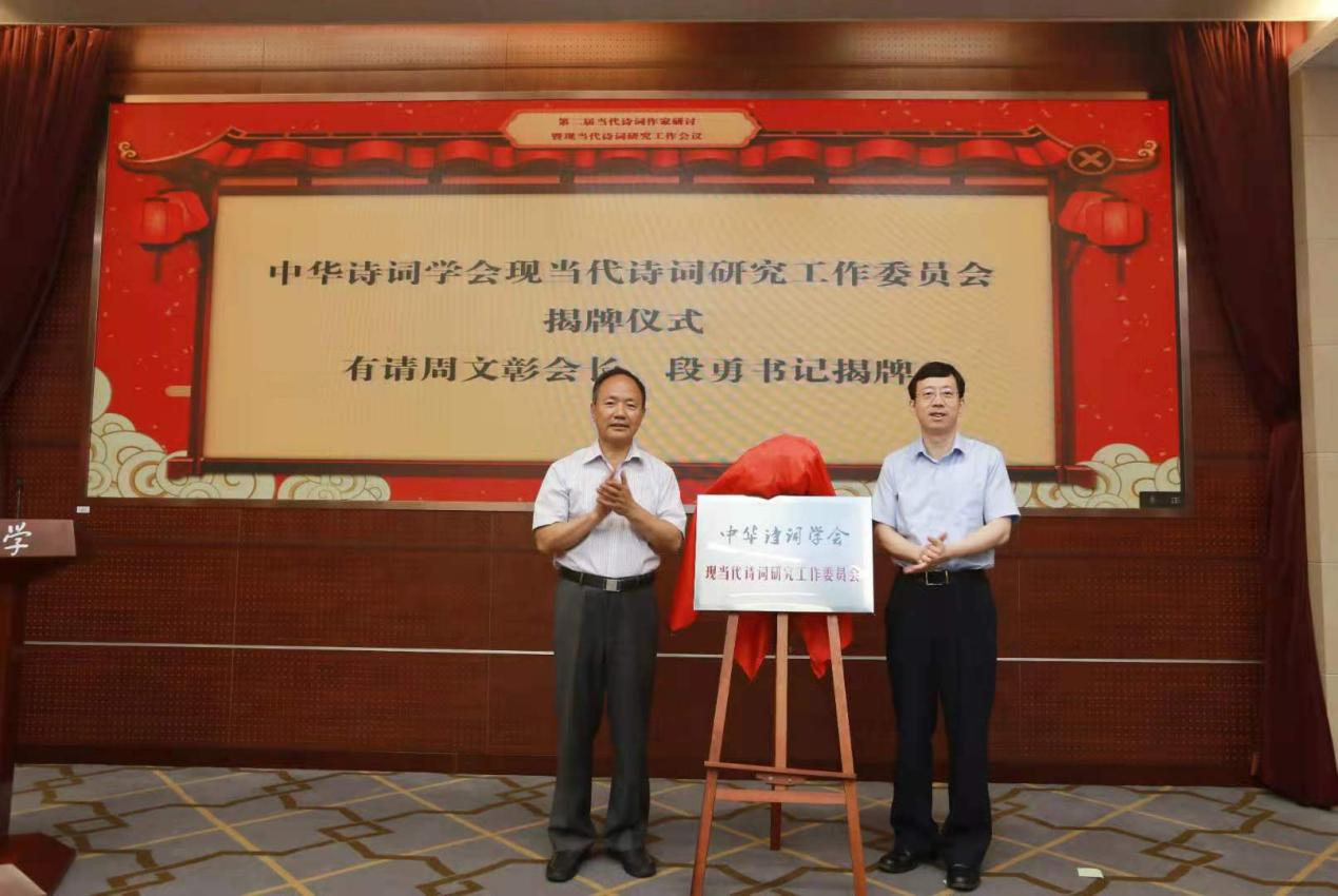 段副书记与周文彰会长共同为中华诗词学会现当代诗词研究工作委员会揭牌。