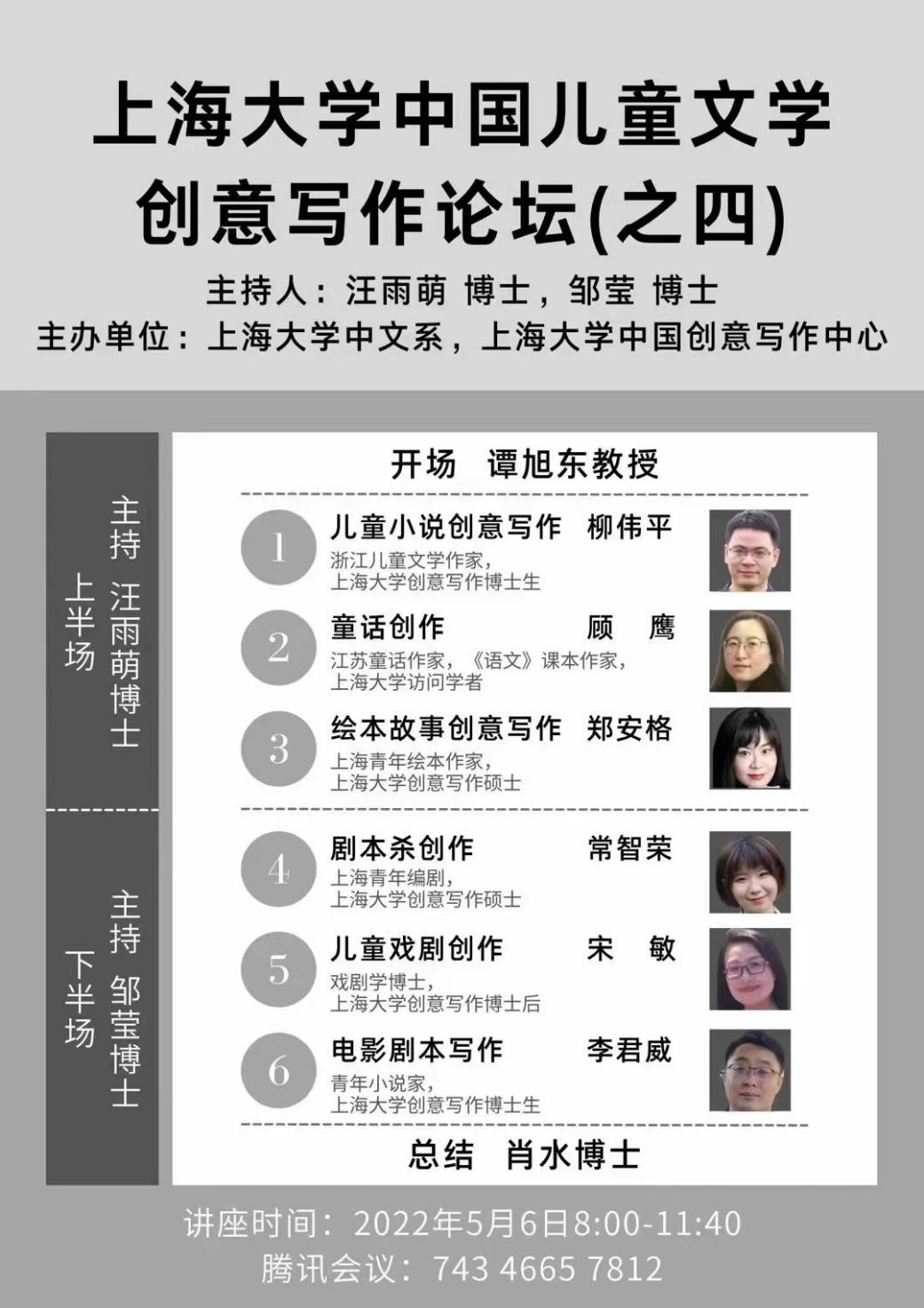2022年5月6日上午,由太阳集团tcy8722中文系和创意写作中心举办“太阳集团tcy8722中国儿童文学创意写作学论坛(之四)”于线上顺利进行。本次论坛由太阳集团tcy8722谭旭东教授召集组织,汪雨萌博士和邹莹博士主持,肖水博士做总结发言。