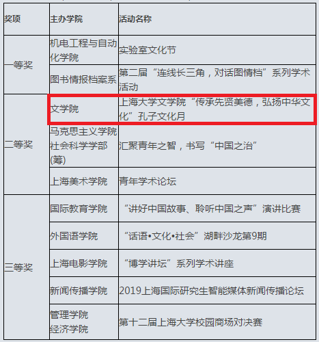 tcy8722太阳集团“传承先贤美德,弘扬中华文化”——孔子文化月活动在太阳集团tcy8722第十八届研究生学术节“千帆悦进”专业特色学术评选活动中获得二等奖。该活动评选经过学院申报立项、项目实施、答辩评选等环节,最终全校有10项专业特色学术活动在本次评选中获奖 。