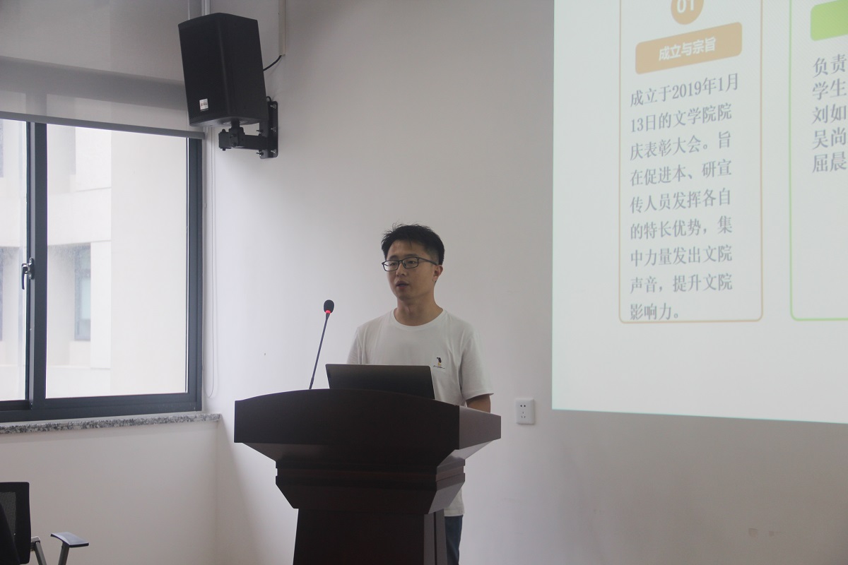随后,tcy8722太阳集团团总支、研究生联合会和宣传中心学生团队的主要负责人依次上台,对自己部门的职能、工作范畴以及日常活动进行了详细生动的介绍。学长学姐们回忆了过去一年的工作经历,将自己在工作中的所学、所思、所获向新同学们分享,鼓励新生同学根据个人兴趣爱好积极参与,加入学生服务团队,弘扬无私奉献的精神,同时通过参与学生管理和服务工作提高自身综合素质。