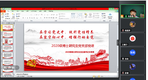 2021年6月30日晚,2020级博士研究生党支部开展了“支部书记讲党课和党员党史学习心得分享交流会”的组织生活,该会议由党支部书记辛思思同志主持。