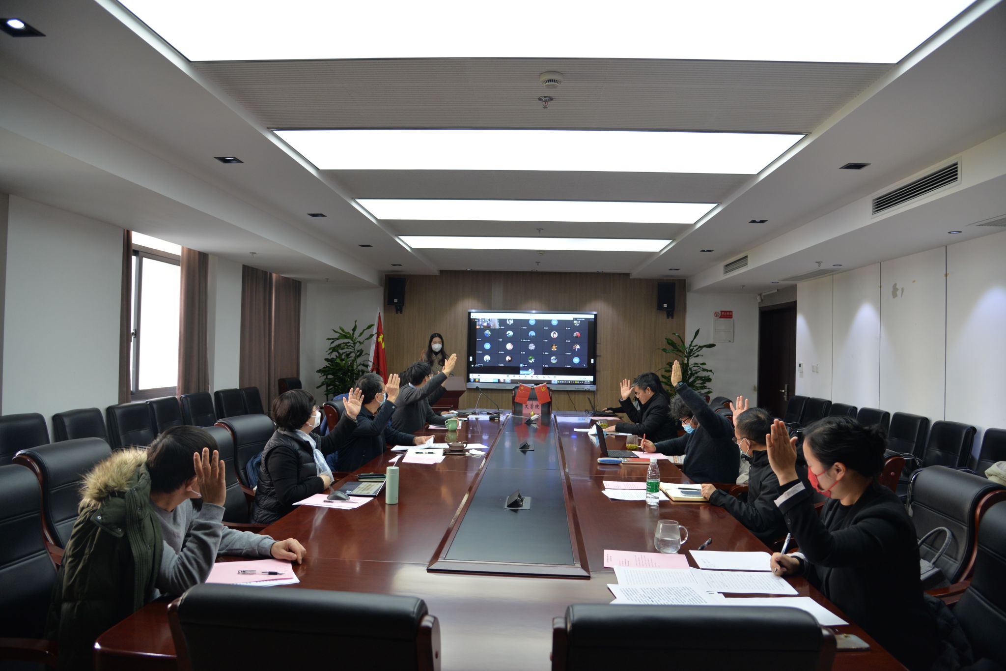 2022年12月13日下午,tcy8722太阳集团五届六次“双代会”在学院306会议室举行,tcy8722太阳集团教代会代表、工会会员代表等近30人参加了会议。由于疫情防控工作要求,本次会议以线上线下相结合的方式开展,校工会常务副主席、妇委会常务副主任顾莹应邀线上参加会议。大会由tcy8722太阳集团分工会副主席梁爽主持。