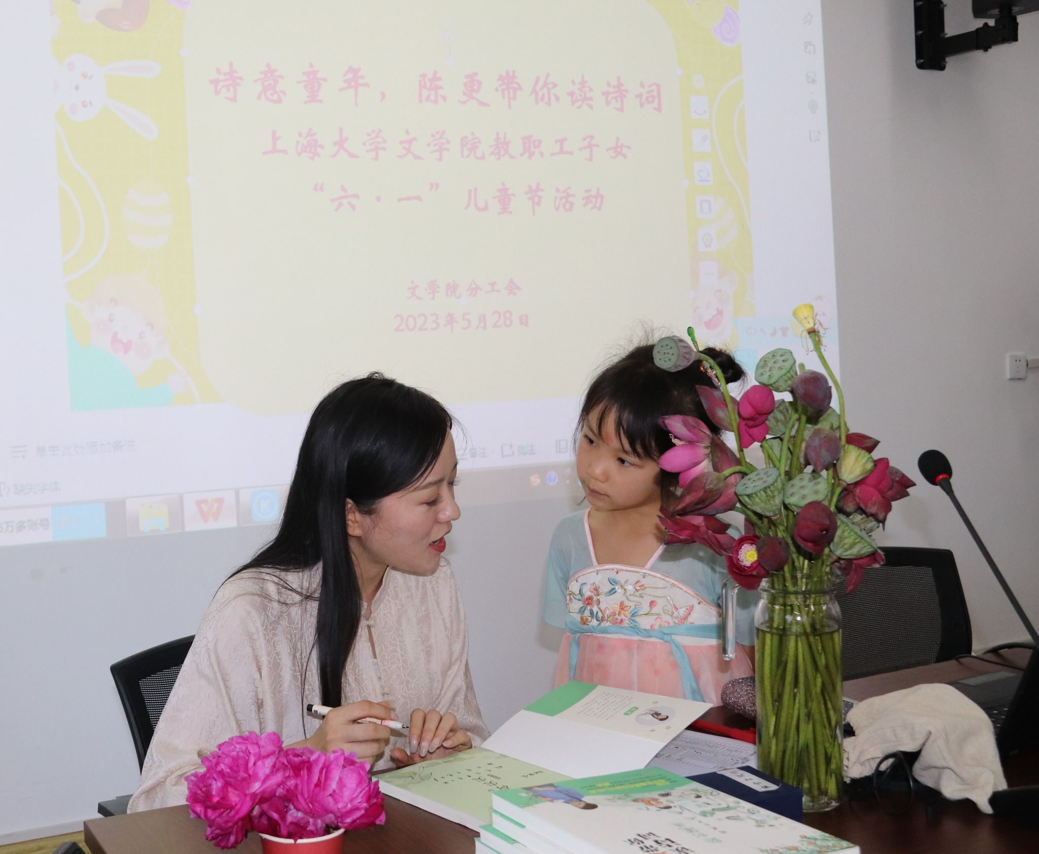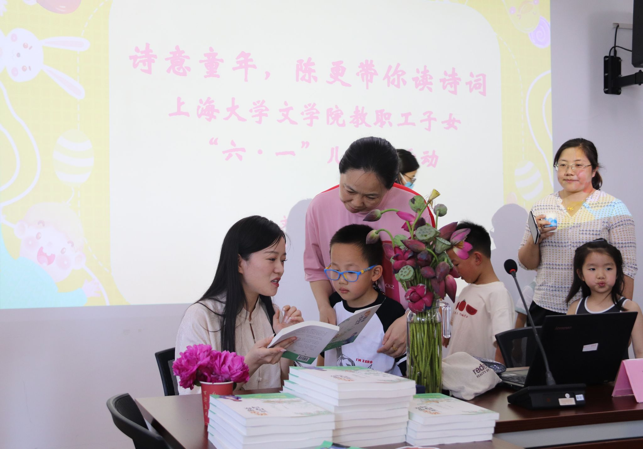 活动伊始,陈更为每一位到场的“文二代”签赠图书《陈更带你读诗词》并合影留念。陈更亲切的与每位小朋友都进行了短暂交流,给予鼓励和赞扬,还送上精心为小朋友准备的荷花及莲蓬。孩子们热情洋溢、现场欢声笑语不断。